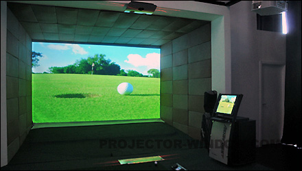 室內虛擬高爾夫,出于場地空間的限制,和安全、人性化考慮,投影機安裝在畫面斜后方,NEC