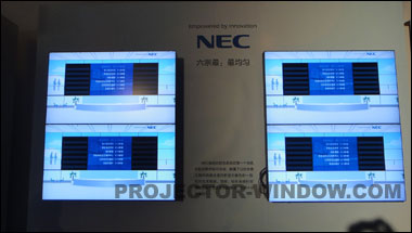 以展會(huì)上最具特色的LED多角度背光展區(qū)為例,2×2拼接的X461S顯示器別出心裁的采用了吸頂安裝方式。X461S是NEC今年推出的超薄全高清數(shù)字標(biāo)牌產(chǎn)品,厚43.3mm、重18.9Kg的魔鬼身材讓吊裝變得簡(jiǎn)單可靠。由于采用了白色LED背光技術(shù),其色彩更艷麗、逼真,可視角度也更寬,無(wú)論從任何角度都可觀賞到完美畫(huà)面。更為重要的是,LED背光方式使屏幕亮度更為一致,畫(huà)面更和諧統(tǒng)一。在多臺(tái)拼接使用時(shí),可有效防止拼縫處與中間產(chǎn)生亮度差,輕松完成一體化屏幕的拼接,為行業(yè)用戶提供了最佳選擇。