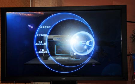 當下最流行的莫過于觸屏技術,在交流會中,NEC向觀眾展示了超越傳統雙CCD、3CCD的無盲區4CCD觸控技術,利用特殊的優化算法處理,避免了重疊區域誤算的風險,可以實現雙人同屏幕的同時精確操控,極大提升了觸屏準確性和反應速度。現場搭建的觸屏解決方案應用了符合OPS標準的內嵌PC操控方式,不僅省去外置信號線、電源線,實現了美觀的一體化方案形態,并且達成內置PC信號直傳顯示器的穩定傳輸方式,避免了外接線路帶來的不穩定因素。在現場體驗中,使用者的觸摸操控結果還會同頻率顯示在3*3大屏幕拼接屏上,實現了信息共享和實時動態的同步調用。 |