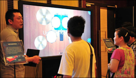 當(dāng)下最流行的莫過于觸屏技術(shù),在交流會中,NEC向觀眾展示了超越傳統(tǒng)雙CCD、3CCD的無盲區(qū)4CCD觸控技術(shù),利用特殊的優(yōu)化算法處理,避免了重疊區(qū)域誤算的風(fēng)險,可以實現(xiàn)雙人同屏幕的同時精確操控,極大提升了觸屏準(zhǔn)確性和反應(yīng)速度。現(xiàn)場搭建的觸屏解決方案應(yīng)用了符合OPS標(biāo)準(zhǔn)的內(nèi)嵌PC操控方式,不僅省去外置信號線、電源線,實現(xiàn)了美觀的一體化方案形態(tài),并且達成內(nèi)置PC信號直傳顯示器的穩(wěn)定傳輸方式,避免了外接線路帶來的不穩(wěn)定因素。在現(xiàn)場體驗中,使用者的觸摸操控結(jié)果還會同頻率顯示在3*3大屏幕拼接屏上,實現(xiàn)了信息共享和實時動態(tài)的同步調(diào)用。 |