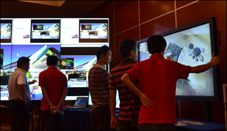 NEC“價(jià)值之旅--領(lǐng)航”高端工程液晶顯示器應(yīng)用方案交流會在鄭州隆重舉行。在交流會中,NEC向觀眾展示了超越傳統(tǒng)雙CCD、3CCD的無盲區(qū)4CCD觸控技術(shù)。 |