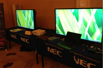 2013年8月6-7日,“NEC高端工程液晶顯示解決方案品鑒之旅”首站活動于福州隆重舉辦。國際顯示巨擘NEC展出了多款大屏顯示器及其相關拼接系統,