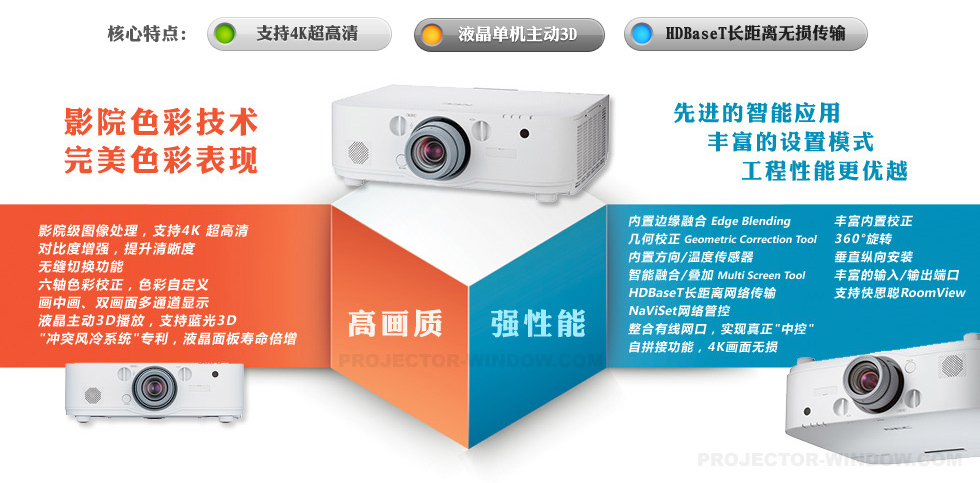 NEC首次在投影機中內置自拼接功能,支持多屏幕自拼接,最大支持4