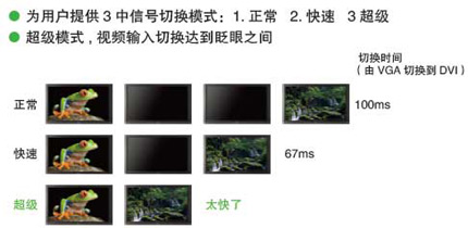 P系列產(chǎn)品獨有的雙卡槽結(jié)構(gòu)設(shè)計;第二代OPS卡槽和視頻擴展卡槽提供了更寬廣的解決方案。信號切換速度性能增強,為用戶提供了從正常到超級三種信號切換模式,而超級模式下視頻輸入切換更是達到眨眼之間。此次推出的四款產(chǎn)品代均采用了NEC特有的菊花鏈設(shè)計,有效減少了信號在傳輸過程中的衰減視頻信號可通過一根DisplayPort環(huán)出;控制信號通過一根網(wǎng)線環(huán)出;最大可支持100臺顯示器的菊花鏈設(shè)計,有助于減少連接線纜和人力成本。