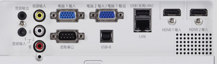 此外,NECCR2305X系列商務投影機支持U盤直讀功能,端口包括2個VGA輸入、1個VGA輸出接口、2個HDMI高清接口、復合視頻輸入。立體聲輸入、有線網絡、無線模塊插口等,接口相當豐富,滿足各類商務應用綽綽有余。 |