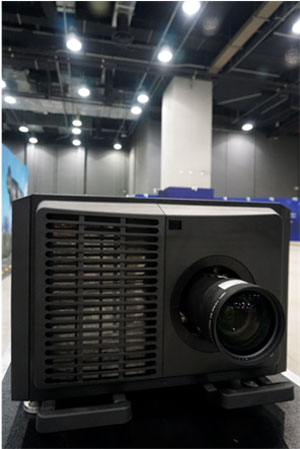 值得一提的是,在現場NEC還帶來了即將推出的4K雙色激光工程投影機。此款新品最高可實現35,000流明的畫面亮度,且實現了點對點真4K,顯示效果驚艷,并且采用了NEC專利技術