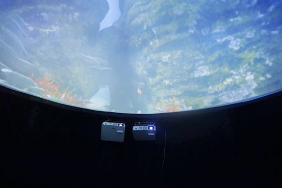 P502HL+工程投影機共同打造一個半球形的“海底世界”,完美還原了靜謐浩瀚海底的華美景致。