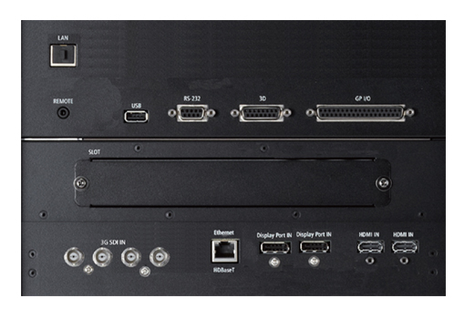 4 個3G-SDI 連接器,1 個HDBaseT,1 個OPS 可選插槽 |
