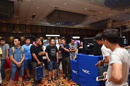 諸多新品吸引現場來賓駐足參觀,零距離體驗NEC激光投影機帶來的精美畫質和震憾效果。成都巡展現場的火爆場面,彰顯著NEC工程投影機用品質征服人心的魅力。