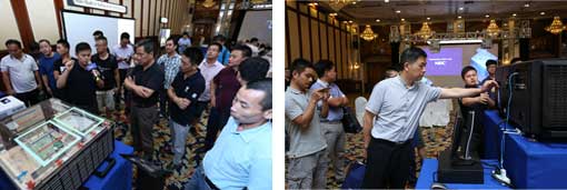 在密封散熱方面,新品PA系列液晶激光投影機可見一斑。這一系列產品是全球唯一沒有過濾網的液晶激光投影機,采用NEC獨有專利技術“CCT內循環全密封散熱系統”,該系統將機身內部的核心元器件完全密閉,有效阻止了灰塵進入,同時又通過領先的熱傳導技術,保證機器內部快速散熱,確保整機長時間運行的穩定性。另外,與會嘉賓還現場感受了“CCT內循環全密封散熱系統”,散熱通風口的溫度幾乎接近人體體溫,贏得了行業客戶的一致認可。