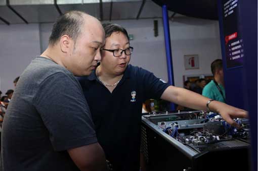 NEC工作人員向客戶細(xì)心講解CCT內(nèi)循環(huán)防塵散熱結(jié)構(gòu)