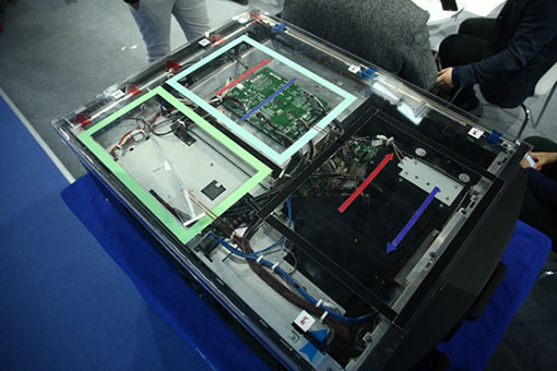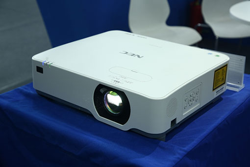 PA653UL+反射式超短焦投影近距離投射出的廣闊公路大畫面,吸引了不少觀眾好奇的目光。在NEC展位你能騎上體感自行車左躲右閃,跟隨120吋大畫面在公路上來一場酣暢淋漓的游戲比賽!NEC