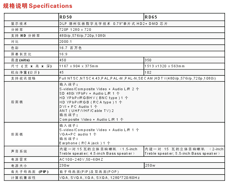 RD50 / RD65系列設計理念是提供最優畫質表現、最佳產品可靠、最大性價比!