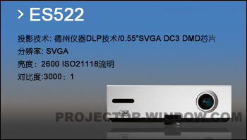 [投影之窗消息] 近日,全球DLP投影機領導品牌奧圖碼(Optoma)推出全新商務投影機產品ES522,其亮度為2600流明,SVGA分辨率,對比度3000:1。
