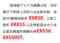 EX556采用XGA DMD芯片,亮度2900流明,對比度10000:1。支持120HZ信號播放,實(shí)現(xiàn)3D立體投影。同時(shí)搭配德州儀器最新的Brilliant