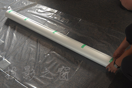 第二步,把屏幕從盒子里拿出,平展在塑料布上。