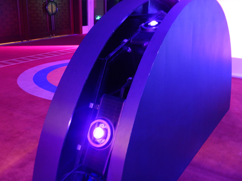搭配專業的數字高清融合器進行邊角修正以及融合帶調整,以1.5x10m拱形投影幕為表現方式,配合量身定做的超高清影片,展現出了激光投影機出眾的特性。