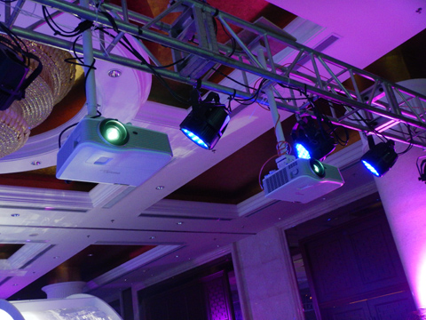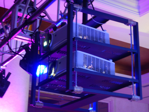 激光工程投影機可以說是未來工程投影機市場的主力及趨勢,超長的光源壽命,免去了售后維護之憂,360°以及側立安裝,為工程應用帶來了便捷的施工方式,豐富的色域表現為用戶帶來亮麗的色彩體驗。本次現場彩虹橋投影方案采用4臺6000流明的激光投影機ZU650,采用360°以及側立投影的方式進行安裝,除能體現出激光光源的特點外,