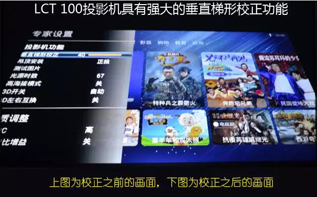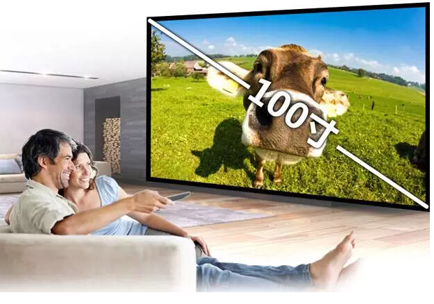 100投影機的投射比僅為0.25:1,投射100英寸大畫面只需60cm。同時LCT