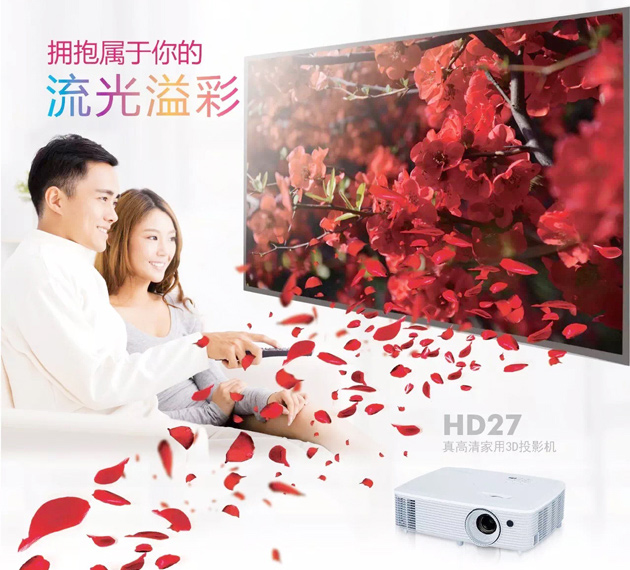 HDTV標準。內置10W揚聲器,無需外接設備。搭載195W長效燈泡,節能模式下可使用6000小時。