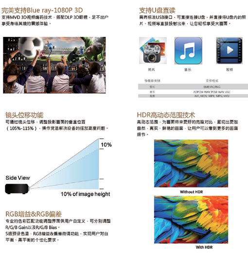 3D技術(shù)等技術(shù),將投影機(jī)豐富程度全面提升,讓用戶無后顧之憂。