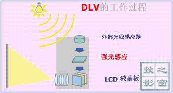 DLV強光感應技術的原理:投影機頂部面板元件就相當于一個周邊環境探測器(ALS),即投影機自動感應窗口根據房間光線調整投影圖像的方式,這一技術大大提高了投影機在明亮房間里對色彩的感應度。