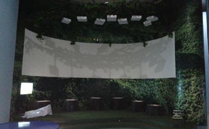 項(xiàng)目配置:8臺(tái)PT-BX50C、弧形金屬幕、拼接融合器、電腦等集成設(shè)備