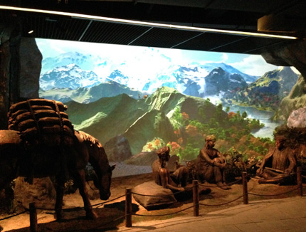 “七彩云南茶禮博物館”以游客體驗為中心,引入4d“U型幕”,讓游客身臨其境般了解關于茶的種植、采摘及烘焙等流程和美麗的傳說。館內運用創意投影系統仿真半景化,突出生態茶園的恢宏壯觀,并通過空間結合實景還原配合多媒體影像,展現茶馬古道春、夏、秋、冬的四季艱辛歷程,帶給游客身臨其境之感。