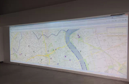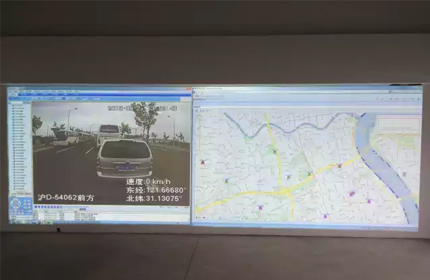 車聯網實際應用解決方案,采用二臺松下工程投影機融合系統,通過松下投影機的色彩亮度控制技術,使得整個畫面的色彩及亮度得到充分的體現,公司自建3G網絡中心,運用車聯網技術控制所有車輛包括出租、大巴及禮賓車輛的運營狀態,在畫面地圖上可以輕松放大任一車輛的實際運行狀態,運用高亮度分辨率工程投影機還原所有細節。
