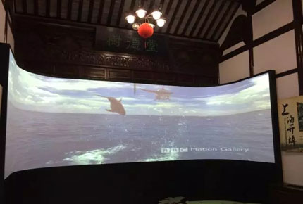 李氏民宅三通道異形融合方案,采用三臺松下BW530投影機,三通道異形投影融合系統。松下投影機特有的邊緣融合技術和梯形校正功能,完美地解決了弧幕所產生的融合帶問題,使整個弧幕的影視效果和諧統一,并很好地配合場館設計,打造出良好的投影環境。 |