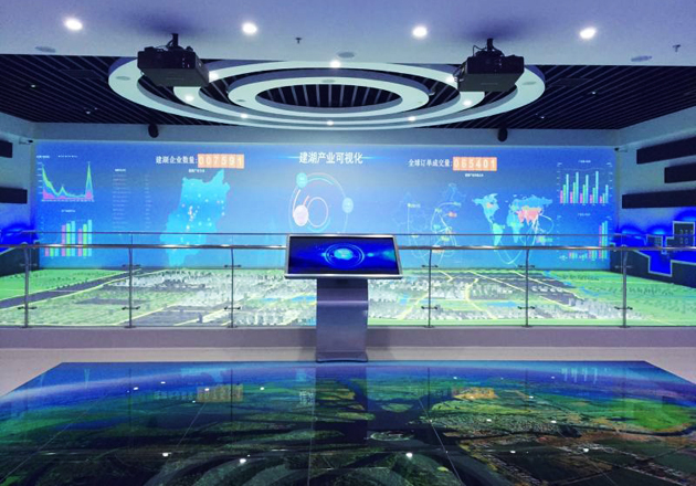 在江蘇省鹽城市建湖縣指揮城市體驗(yàn)中心的項(xiàng)目中,外部環(huán)境對(duì)于展廳內(nèi)部的展示有著極為苛刻的要求,不僅要保證投影機(jī)在強(qiáng)光下畫(huà)面顯示效果出色、機(jī)器性能穩(wěn)定、續(xù)航時(shí)間長(zhǎng),還要保證投影機(jī)滿足不同的展示環(huán)境,同時(shí)操作也要簡(jiǎn)單便捷。展廳共采用12臺(tái)松下LCD工程投影機(jī)PT-SLX74C。