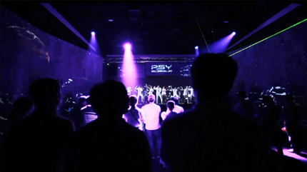 舞臺上的她們伴著音樂舞蹈,一會如飆車,一會又被火焰纏身。舞曲過半,更有真人著黑衣加入進來,與之共舞。隨后身著白衣的鳥叔登場,《江南style》響起,跳起了著名的“騎馬舞”。這些表演全依賴于全息技術的應用。