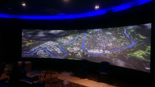 超長跨度的廣闊畫面沖擊著觀賞者的視野,全方位立體聲刺激著體驗者的耳膜,觀眾內心情感與影片情節的完美融合。弧幕影院無疑是最具體驗感的和沉浸感的互動展示載體。在眾多規劃館、展覽館中,我們總能找到弧幕影院的身影,用它來放映城市宣傳影片最合適不過。3臺型號為PT-FRZ570C的松下工程投影機親情助力,為上杭城鄉規劃展覽館的顯示系統升級。