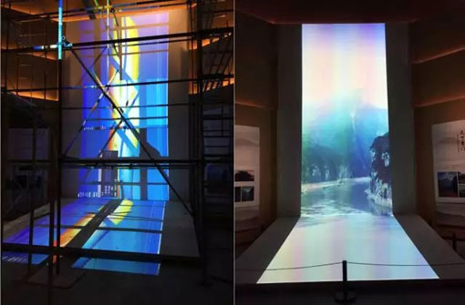 該系統(tǒng)是由3臺(tái)7200流明的松下PT-FRZ78C工程投影機(jī)融合打造的,在3米×11米的折型模型上呈現(xiàn)畫面,配合定制片源,對夔門、天坑、地縫等獨(dú)特地貌的形成過程進(jìn)行全方位演示,直觀的將夔門、天坑、地縫獨(dú)特地形地貌生動(dòng)、形象、震撼地傳達(dá)給每一位參觀者。參觀者可通過紅外感應(yīng)、ipad控制視頻的播放,從而實(shí)現(xiàn)影片與參觀者之間的人機(jī)互動(dòng)。