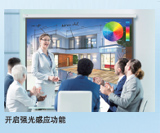 利用內置光纖傳感器實時監測環境照明度并實時調節投影圖像色調和亮度。即使在明亮的房間內,也可輕松舒適的觀看演示。