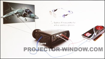 日前,Projectiondesign展示了最新的3D投影技術,透過兩個DVI端子來輸出影像的方式,可以得到3D立體投影效果,產品型號為F10