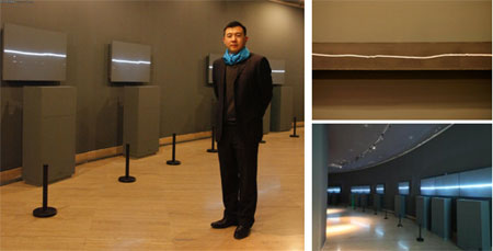 2012年中國美術館迎來了一場重量級的展覽--《譚平個展:|劃》。在展覽上,譚平以藝術的全球觀念,運用抽象藝術語言的鏈接,創(chuàng)造了東方、西方不同文化在同一時空中的精彩聚匯。展覽中最重要的作品《+40m》,正是運用了25臺理光超短焦投影機PJ