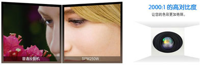 三星投影機M250W的標準分辨率達到了WXGA水平,也就是1280×800像素,與目前使用廣泛的寬屏(16:10)筆記本屏幕畫面可以做到點對點的演示,滿足家庭用戶播放720P高清標準影片的需求。在亮度方面,該機型達到了2500流明,擺脫了環境光線對投影畫面質量的干擾。特別是3LCD投影技術的采用,以及高達2000:1的高對比度,將能夠帶來更為絢麗的色彩呈現。明亮的畫面與艷麗的色彩,無疑將給觀者帶來更美妙的視覺享受。