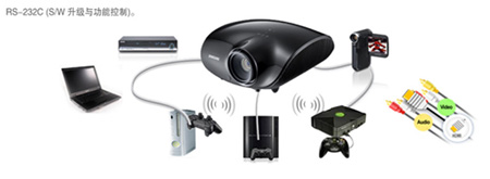 pin)及RS-232C(S/W升級與功能控制)等豐富齊全的接口,完全可以滿足您接駁如HDPC、藍光DVD機或是PS3游戲機等多種高清視頻設備的需求,因此,你既可以用它來欣賞精彩紛呈的大片兒,同時也可以在年末合家團圓的之際,與家人一起去體驗和分享及寬廣視野帶來的極致游戲體驗。