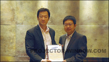 三星電子大中華區(qū)副總裁李載燁常務(wù)為中航陽天總經(jīng)理蒯明先生頒發(fā)授權(quán)書 |