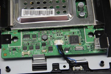 SA850液晶面板的重要控制電路板,由一層金屬板覆蓋和固定,保護電路的同時,也起到了電磁屏蔽的作用。