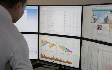 在金融行業(yè),多屏拼接顯示不僅僅用于安全監(jiān)控、信息的發(fā)布,同時(shí),某些專業(yè)金融軟件的開發(fā)與應(yīng)用,同樣少不了多屏系統(tǒng)的配合支持。專業(yè)金融軟件與配套顯示硬件的完美集成使用,可以讓金融行業(yè)客戶在工作中取得到事半功倍的效果。