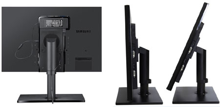 外觀上,三星智翼S24A650D采用了專業顯示器的外形設計,亞光黑色、超窄邊框、超薄的機身,并配有可升降、旋轉的HAS底座、物理OSD按鍵、支持懸掛的標準VESA壁掛孔,整體風格簡潔緊湊、大氣干練,功能全面且實用。S24A650D的機身也使用了新型的無污染、節能、環保材質,不僅堅固耐用,更保證了使用者的身體的健康。三星S24A650D采用了適配器外置設計,背部安裝了集線器,加上產品本身超薄的機身,使它能有效節省用戶的桌面空間。