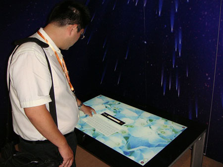 值得一提的是三星SUR40交互顯示產品。它能夠使液晶顯示屏能夠在不使用攝像頭的情況下獲取圖像,是三星采用微軟創新技術而打造的一款革新性產品。人們現在可以使用一塊能識別手指、手及放在屏幕上的其它各種物體的大型、超薄顯示屏來分享信息、相互合作和探索世界。