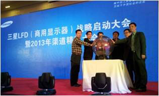 2013年4月,三星電子分別在河北、河南和北京舉辦了2013年三星LFD數字標牌產品發布及渠道啟動會,同當地經銷商分享了三星針對數字標牌行業領域的最前沿科技、最領先產品以及最專業的解決方案,并就三星商用未來的發展方向、產品戰略、渠道布局等三星合作伙伴共同關心的問題進行了探討。