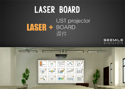 Board,這是一套由純激光光源超短焦投影機(jī)、互動(dòng)模塊、紅外互動(dòng)筆、計(jì)算機(jī)和特制可書寫式交互式白板組成的全新互動(dòng)教學(xué)解決方案。大畫面是投影的最大優(yōu)勢(shì),視美樂Laser