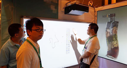 Board,是由激光光源的超短焦投影機、互動模塊、紅外互動筆、計算機和特制可書寫式交互式白板組成的全新互動教學解決方案。