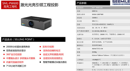 近年來工程投影機市場,新光源則成為了眾廠商追捧的對象。激光易于提升亮度,而且非常適合高端工程投影機產品,使其綜合性價比遠高于傳統燈泡光源。SEEMILE激光高亮系列工程機的優勢十分明顯: