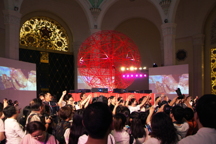 25日晚,上海展覽中心,王小慧的大型行為藝術正式啟動。視美樂出動八臺激光工程機,與王小慧一起“尋找我們的視覺日記”!500位嘉賓同時舉起象征鏈接的紅繩,記錄當下的視覺日記。本次活動通過各種互聯網傳播渠道,覆蓋幾千萬人,創造了互聯網傳播的新模式。