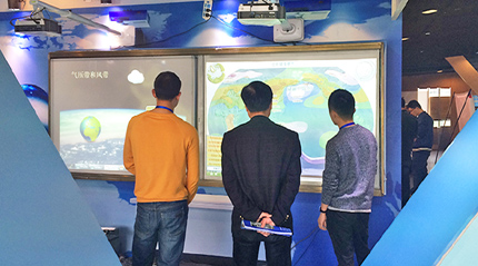 本屆展會中,羿飛教育攜SML-EW350超短焦教育激光投影機、數字模型、數字立體地形、多媒體球形顯示亮相展會。SML-EW350超短焦教育激光投影機是一款基于SLPL技術并結合全新的內反射超短焦鏡頭,投射93英寸寬屏畫面僅需48cm,擁有飽滿色彩、清晰圖像、持久亮度、大畫面,以及零維護、零輻射、零污染等特點的教育投影機,突破了傳統多媒體教學的影像表現和視覺體驗。超短焦激光投影機讓演示更精彩,讓教學更豐富。